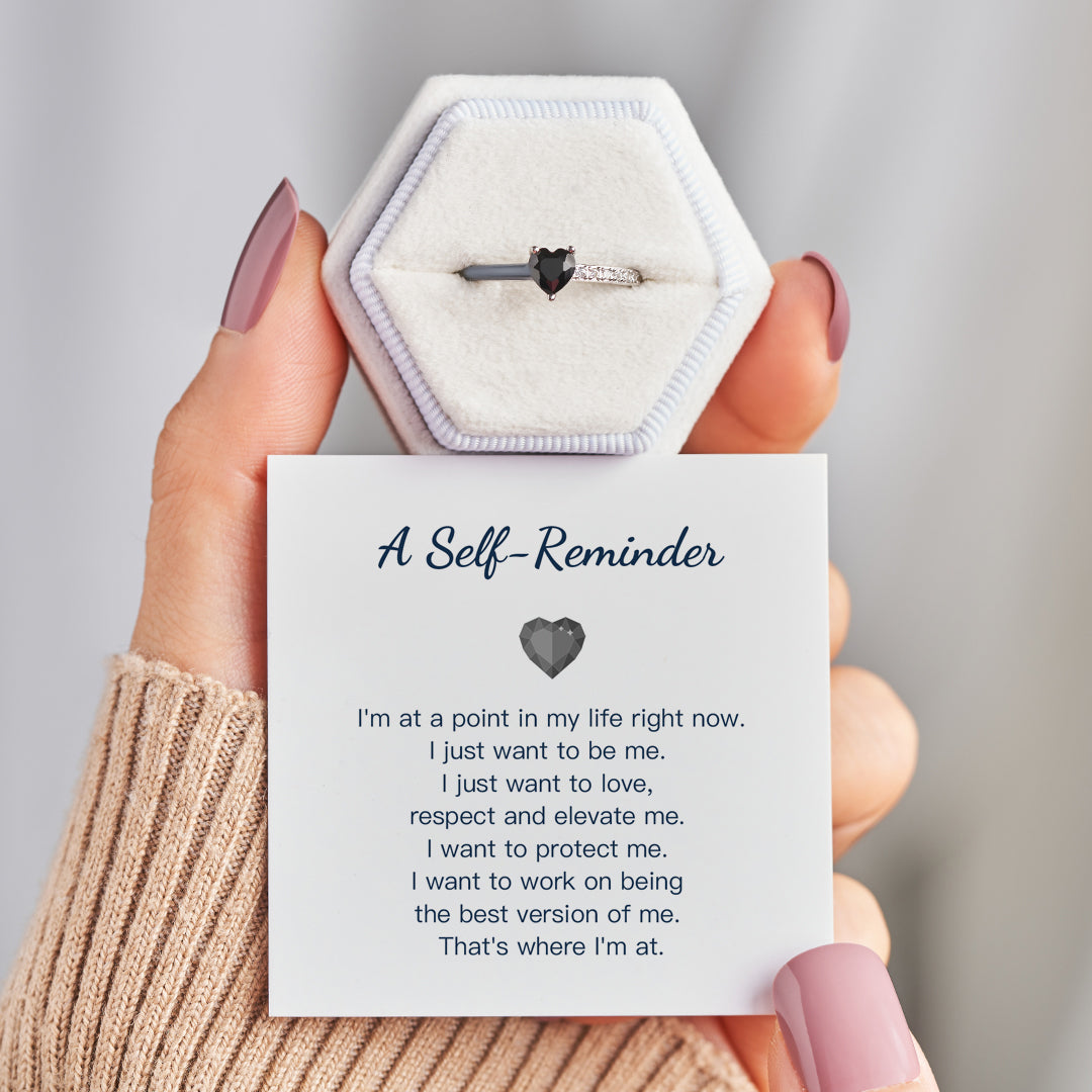 I Am Proud Of Myself Black Enamel Heart Ring