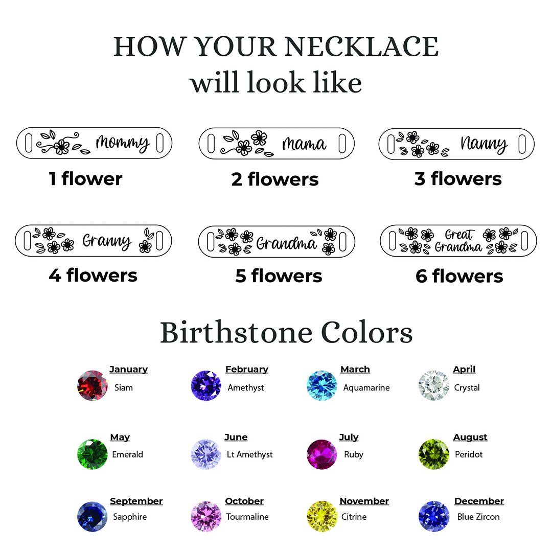 What better way to show your love than with a personalized wildflower bracelet? Each flower will go with 1 birthstone. You can choose the birthstone of each person, as well as their respective birthstones. This makes for a beautiful piece of jewelry that Grandma will cherish forever.