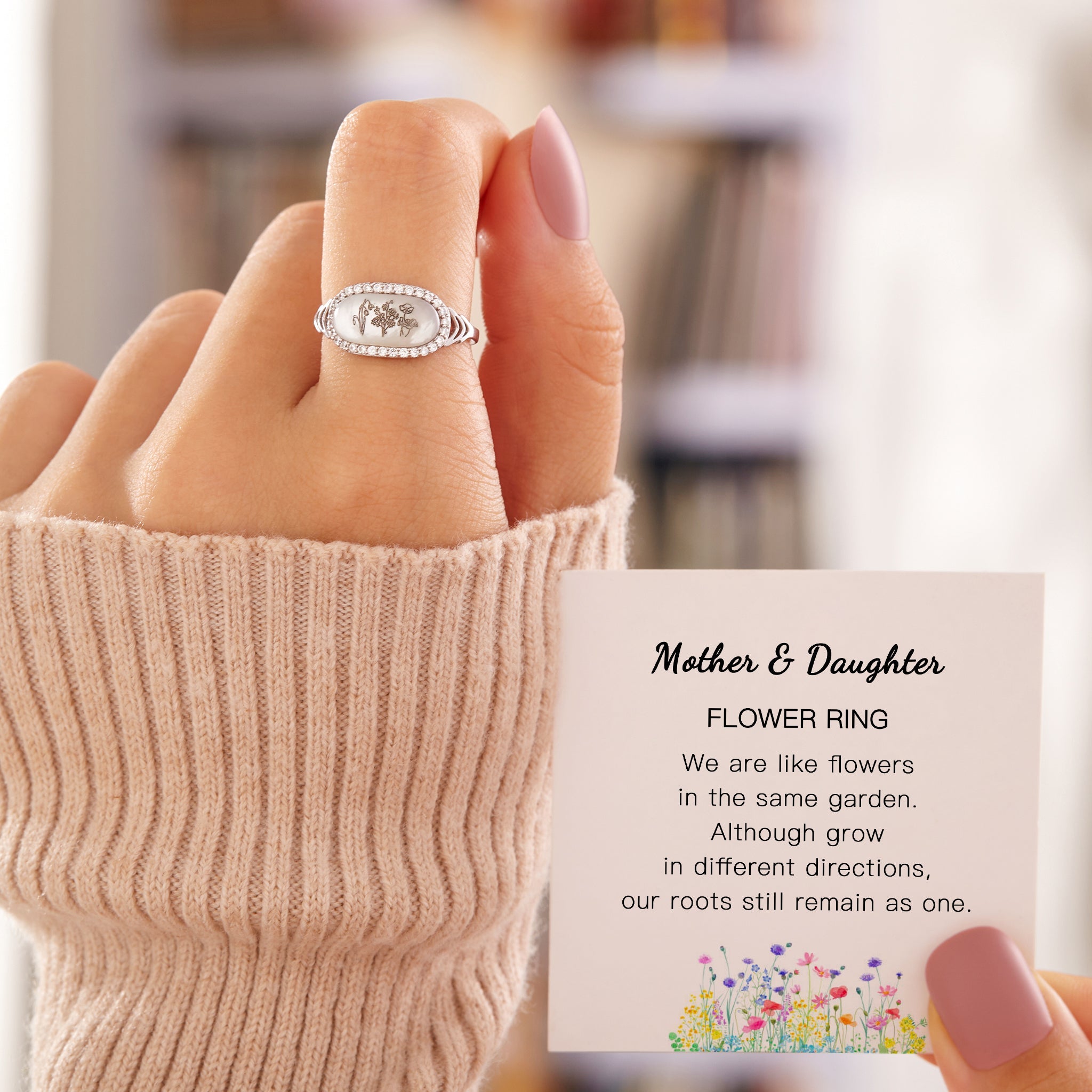 S925 To Daughter Birth Month Flowers White Shell Ring
